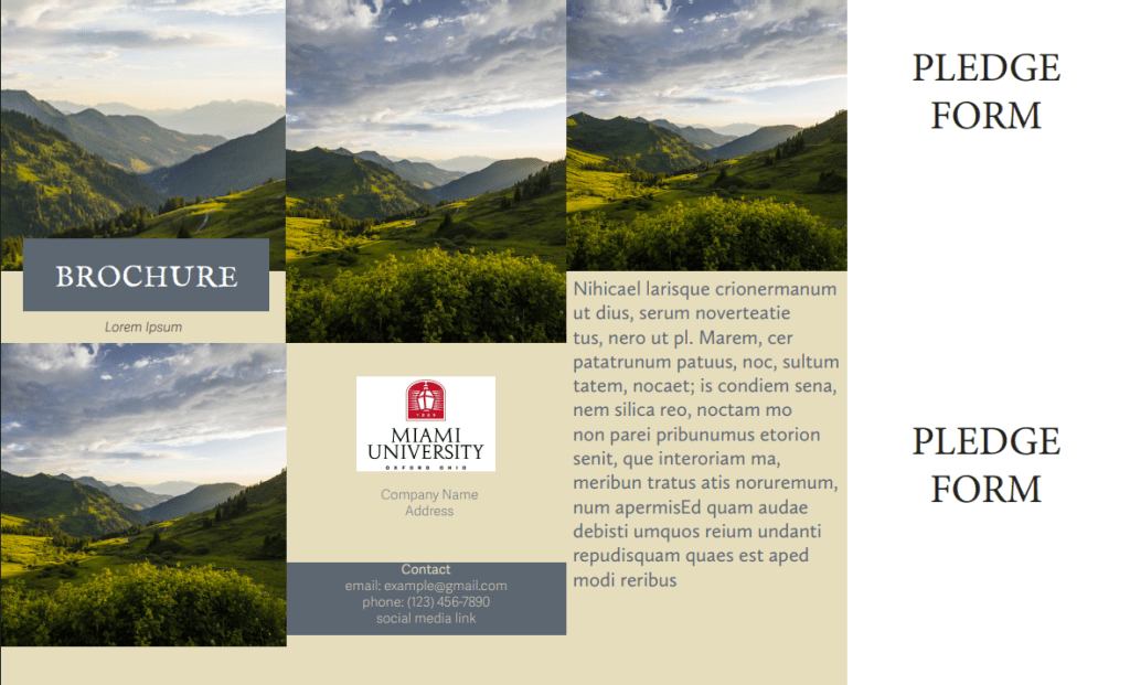 I was assigned to a smaller sub-group of five people who were responsible for creating a Capital Campaign Brochure that would feature both a physical and digital version, to be used to encourage visitors to donate to LCHS. After reviewing our skillsets, we divided our work into roughly three components – the physical brochure, the digital version, and the pledge form. The physical brochure contained an attached pledge form that would allow viewers to directly start a donation, or use the QR code attached to donate online. I worked with two others to create the physical brochure, while the remaining two members of our group kept in contact with LCHS and built out the web version.
